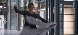 Lavoro il corpo nel dettaglio, i piccoli gesti, la relazione con le cose e gli oggetti intorno a me, la relazione con lo spettatore al di là della camera che ci riprende, il suono del mio corpo al di là della musica.